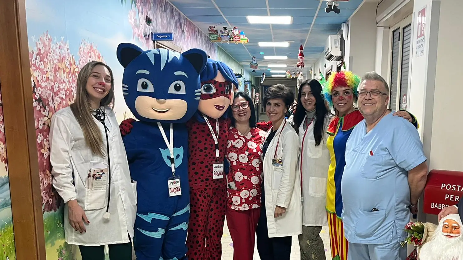 A rendere l’iniziativa ancora più emozionante è stata la presenza delle amatissime mascotte di Gattoboy e Ladybug, che hanno animato il reparto regalando sorrisi, abbracci e momenti di autentica gioia ai piccoli pazienti, trasformando il pomeriggio in una vera festa natalizia.
