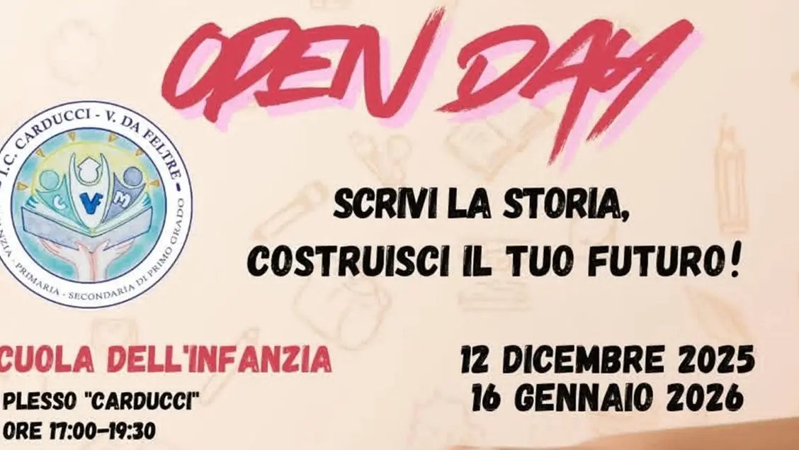 “Scrivi la storia, costruisci il tuo futuro!”. È questo lo slogan scelto per l’Open day dell’Istituto Comprensivo “Carducci - V. Da Feltre” di Reggio Calabria, che anche quest’anno apre le porte al territorio per far conoscere le strutture e presentare la ricca offerta formativa.