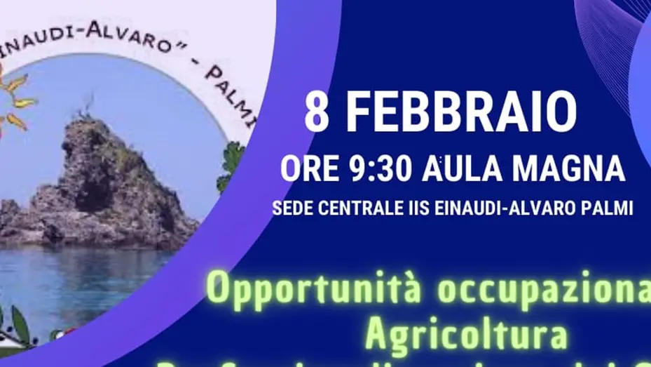 L’8 febbraio alle 9:30 presso l’Aula Magna dell’Iis “Einaudi-Alvaro” si terrà il convegno “Opportunità occupazionali in Agricoltura. Professionalizzazione dei Giovani: esigenza di figure specializzate nel Settore agricolo e forestale”.