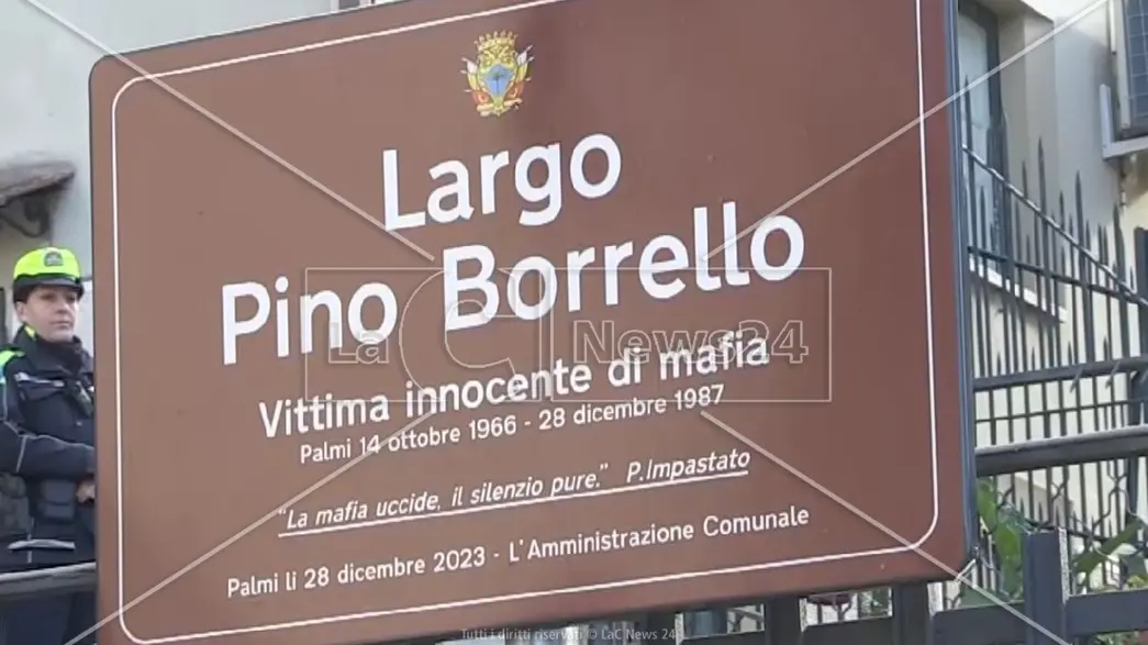 A benedire il cartello, che reca la scritta “Largo Pino Borrello-Vittima Innocente di Mafia-La mafia uccide, il silenzio pure”, è stato il vescovo Giuseppe Alberti, mentre è toccato ad Enzo Infantino descrivere i passaggi che hanno portato l’associazione Ouitalos a proporre al Comune l’intitolazione. Nel loro intervento, Carmela e Claudio Borrello hanno ricordato le difficoltà patite subito dopo l’omicidio, quando, a fronte di una indagine che si è poi rivelata infruttuosa, la famiglia dovette lasciare Palmi perché ritenuta implicata nella faida.