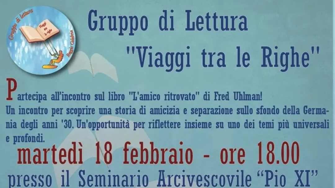 Martedi 18 febbraio, l’evento curato da Francesca De Stefano. Previsti gli interventi dei pastori: Don Simone Gatto, Rettore del Seminario, Pasquale Foca’ della Chiesa Evangelica della Riconciliazione. Bruno Gabrielli della Chiesa Evangelica Valdese. Per l UCEI parteciperà dr.ssa Ivana PEZZOLI Sezione Calabria Comunità Ebraica di Napoli. Padre Sergej Tikhonov, iconografo, sacerdote ortodosso, vice-parroco della Chiesa di San Paolo dei Greci di Reggio Calabria e Rettore del Santuario greco-ortodosso di San Giovanni Crisostomo di Gerace. L’occasione e’ data dal commento delle pagine del libro “L’amico ritrovato” di Fred Uhlman.