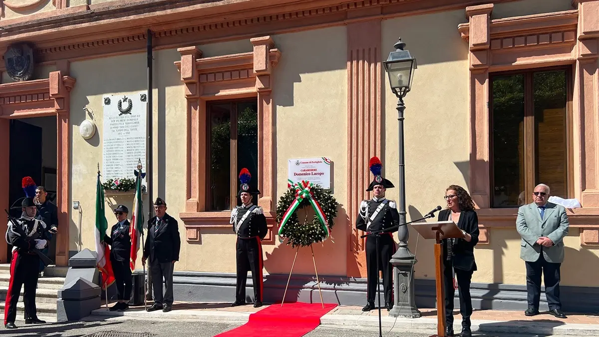 «E’ particolarmente meritevole la decisione della Commissione – ha proseguito Ferro – di porre rimedio alla mancanza di un ricordo per i caduti per la Patria dopo quelli della Grande Guerra, facendo coincidere l’apposizione della targa commemorativa con l’inizio dei lavori di ampliamento del Municipio, un intervento che ha un importante valore simbolico perché la casa comunale rappresenta l’intera comunità, che vuole crescere e guardare al futuro con fiducia. Domenico Lacopo interpretò in pieno la figura del carabiniere, consacrando la propria vita alla protezione della comunità e alla difesa dei valori fondamentali della nostra Nazione. La sua storia è un esempio di coraggio, di fermezza d’animo e amore patrio, contro l’oppressione nazista e per la difesa della libertà e della dignità umana».