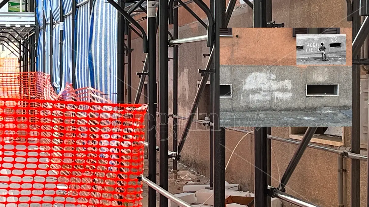Un’impalcatura e una facciata in corso di rifacimento nella zona Sud di Reggio Calabria. Situazione apparentemente comune e diffusa se non fosse che quel palazzo, proprio sulla parte che si affaccia su via San Pietro, reca la scritta “Reggio Libera” di recente attenzionata.