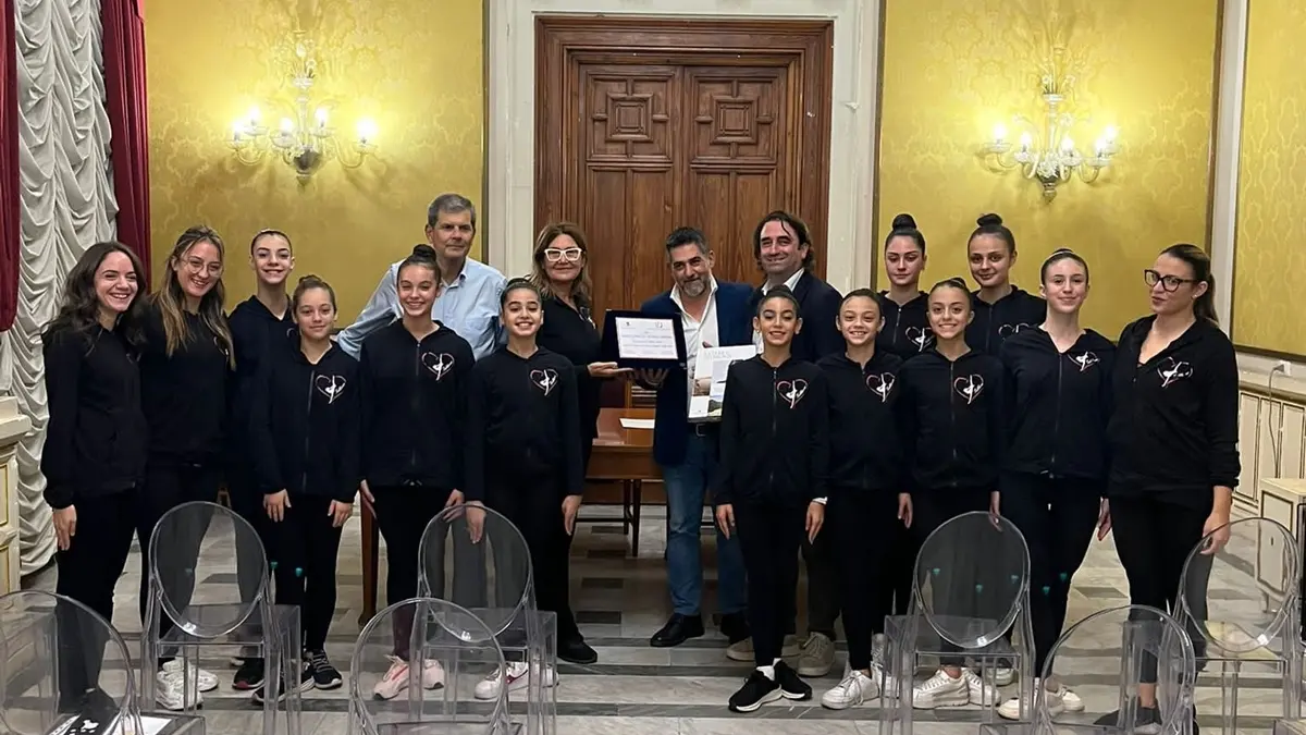 Sono state ricevute dal sindaco facente funzioni Paolo Brunetti e dal Delegato allo Sport Giovanni Latella, le giovani atlete della Società Ginnastica Ritmica “Gebbione”. La società ha ottenuto quest’anno un prestigioso traguardo di categoria: la “Gebbione” è infatti campione d’Italia 2023, del Campionato Nazionale di Serie “D” a squadre categoria allieve con le ginnaste: Marta Borzumati Marta, Greta Costantino Greta e Alessandra Marcianò. Un risultato di tutto rispetto per le atlete reggine, considerando che al campionato, svoltosi a Rimini lo scorso mese di giugno, hanno partecipato oltre 140 squadre provenienti da tutta Italia.
