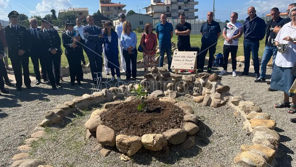 Piantumata la talea è stata anche scoperta la targa di aiuola della Legalità. «Questa targa arricchisce ulteriormente questo luogo altamente simbolico e anche questo odierno momento di condivisione perché è stata realizzata da un altro gruppo di detenuti impegnati nel laboratorio di marmo, presso la casa circondariale Giuseppe Panzera di Reggio Calabria», ha sottolineato il direttore reggente del carcere di Arghillà, Mario Antonio Galati, porgendo al tenente colonnello Giuseppe Micalizzi un omaggio altrettanto speciale, ossia un bassorilievo realizzato nel laboratorio del carcere Luigi Daga di Laureana di Borrello.
