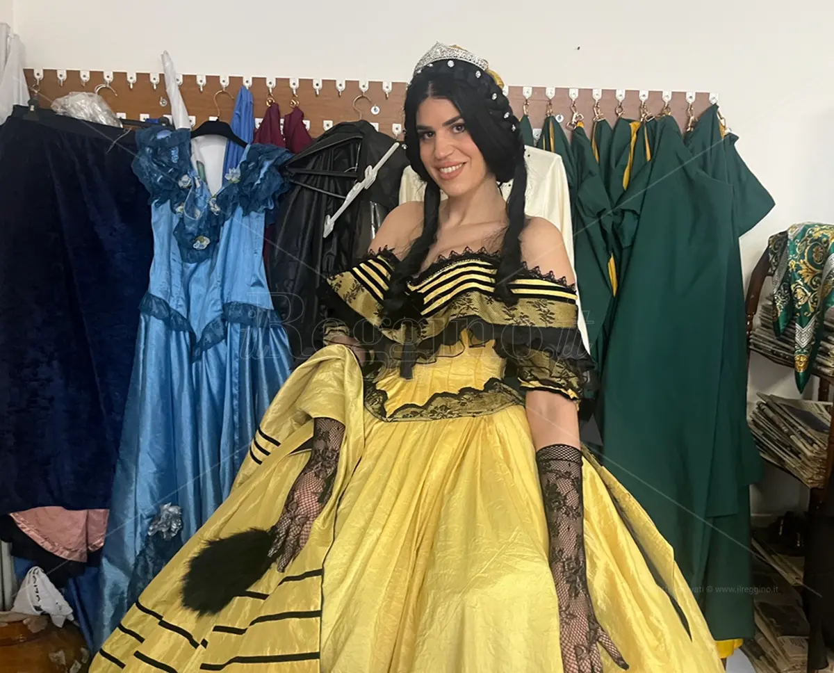 «Ho una grande passione per gli abiti d’epoca. In questa occasione siamo qui a Reggio per portare le atmosfere del gran ballo de Il Gattopardo con questo vestito che indosso e che io stessa ho confezionato in taffetà di pizzo con riporti di raso e tulle. È la mia Sicilia con la sua storia a ispirarmi. Amo vivere in Sicilia e non vorrei stare in nessun altro posto anche se lavorare non è facile», ha raccontato la stilista e costumista siciliana, Elisabetta Di Dio.