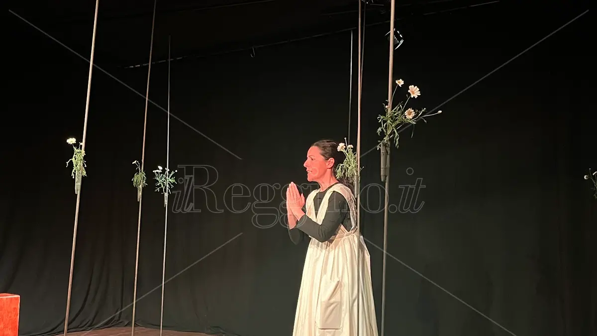 E mentre la storia fluisce su quel palco adornato di sole margherite, quelle parole raggiungono il pubblico che con lei si ritrova tra quelle anime il cui nome è sepolto, come le loro storie. E allora cosa resta? Resta Carmen che aspetta e che, come Renata Falcone, cerca e cerca ancora. In quel luogo così assoluto, radicale e speciale, che è il cimitero di Armo, non cerca solo il senso della sua esistenza segnata dall’assenza.