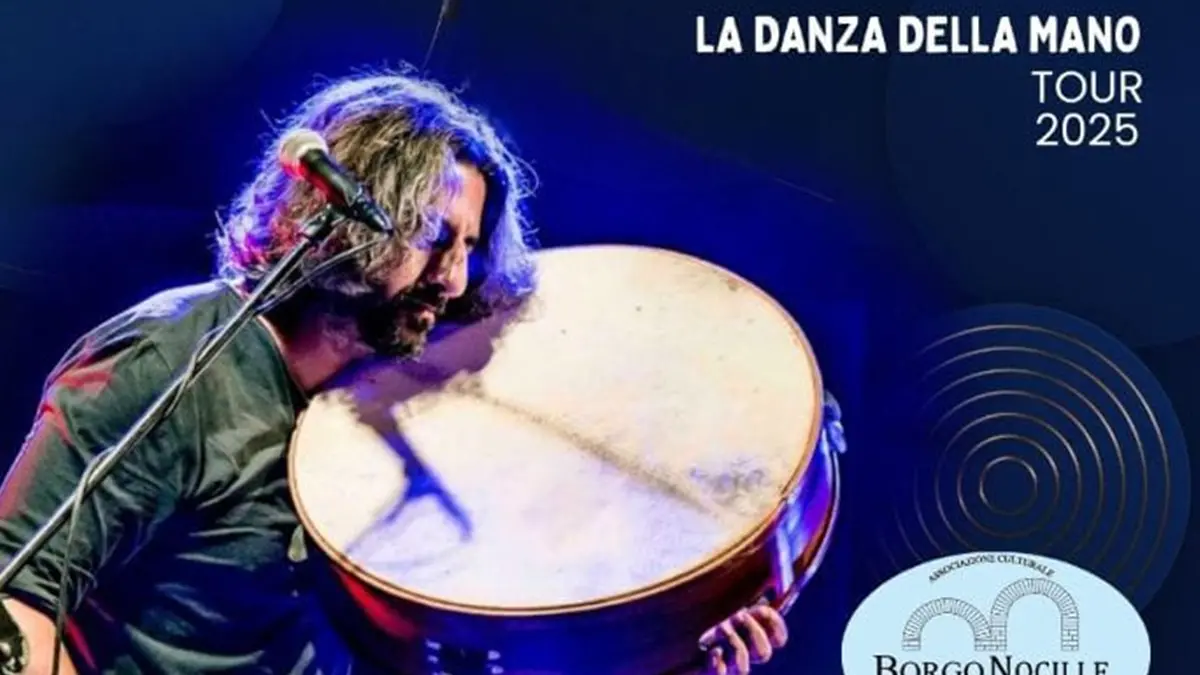 L’artista calabrese porterà a Borgo Nocille il suo spettacolo “Tamburo e Voce… battiti di un cantastorie”, parte del tour 2025 La danza della mano. Brusco, da anni protagonista della scena musicale popolare, propone un viaggio sonoro che intreccia storie, leggende e memorie del Sud con il ritmo del tamburo a cornice, strumento principe della tradizione mediterranea.