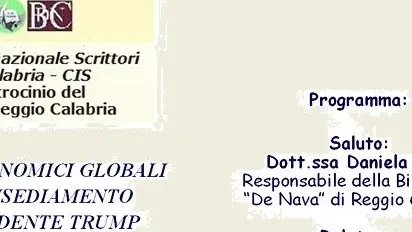 Il Comune di Reggio Calabria, il Centro Internazionale Scrittori della Calabria e la Biblioteca “De Nava”, Martedì 14 gennaio 2025, alle ore 16:45, nella sala conferenze della Biblioteca, promuovono la conferenza “Scenari economici globali dopo l’insediamento del Presidente Trump”.