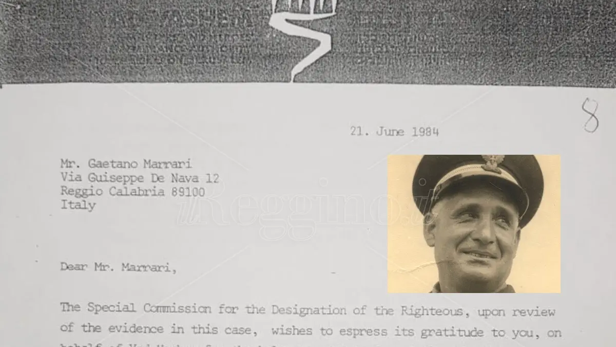 «Your name wil be joined to those who, at considerable risk to themselves, helped Jews in distress». Così scrive Mordecai Paldeil, direttore del dipartimento dei Giusti dello Yad Vashem di Gerusalemme in una missiva datata 21 giugno 1984. La lettera era stata inviata a Gaetano Marrari all’indirizzo di via De Nava dove ha vissuto. In essa si richiama l’aiuto prestato agli ebrei durante l’olocausto – «for the help extended to Jews during the Holocaust period» – e si congratula annunciando l’inserimento del suo nome tra coloro che a rischio della loro vita li avevano aiutati.