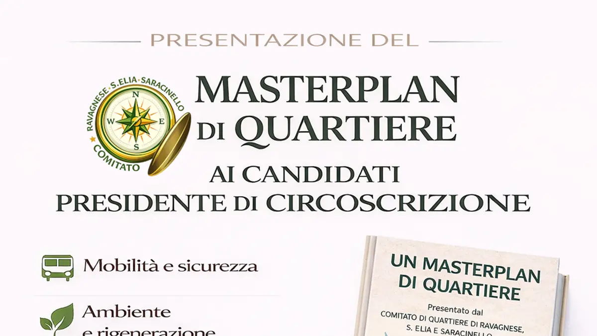 Il Comitato di quartiere Ravagnese, S. Elia e Saracinello promuove un incontro pubblico che si terrà domenica 26 aprile, alle ore 19:30, presso la parrocchia Santa Maria del Buon Consiglio di Ravagnese, in occasione della festa liturgica della Madonna del Buon Consiglio, dedicato alla presentazione del Masterplan di Quartiere e al confronto con i candidati alla carica di Presidente di Circoscrizione.