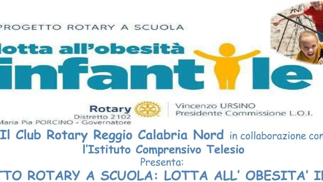 “Lotta all’obesità infantile” è il progetto promosso dal Distretto Rotary 2102 di cui è Governatore Maria Pia Porcino e che grazie alla sinergia tra il Rotary Reggio Calabria Nord e l’Istituto Comprensivo Telesio, sarà presentato giovedì 16 Gennaio alle ore 12,15, presso l’Aula Polifunzionale “C.Marsala” della Scuola Secondaria “Montalbetti”.