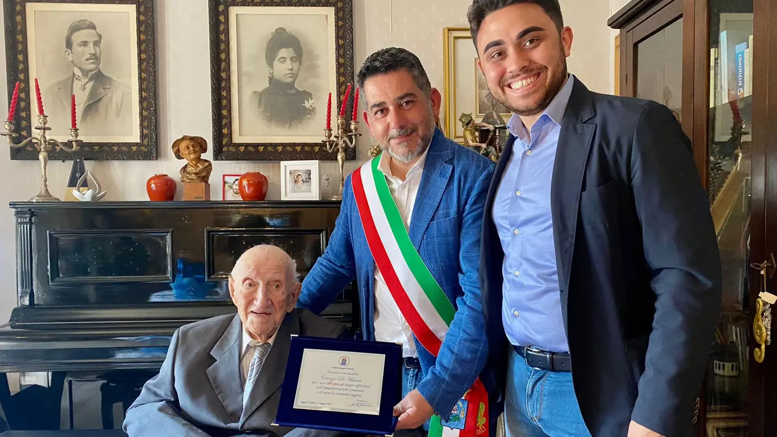 Un augurio speciale al Signor Oronzo De Matteis che nei giorni scorsi ha raggiunto la veneranda età di 100 anni. Al neo centenario reggino, che ha anche ricevuto l’onorificenza di Commendatore dal Presidente della Repubblica, Capo dell’Ordine al Merito della Repubblica Italiana, sono giunte le più fervide felicitazioni da parte del sindaco facente funzioni della Città, Paolo Brunetti, e dal Consigliere delegato Filippo Quartuccio, che nei giorni scorsi gli hanno fatto visita per consegnarli un riconoscimento da parte dell’Amministrazione comunale. Al Commendatore De Matteis e a tutta la sua famiglia i migliori auguri da parte dell’intera comunità reggina.