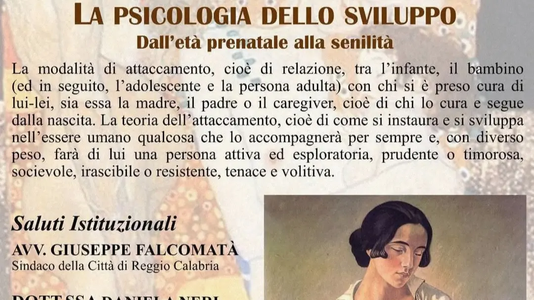 Mercoledì, 19 marzo 2025, ore 16:45 presso la Villetta De Nava, Sala Giuffrè Via Luigi Aliquò Lenzi, l‘A.I.Par.C. in collaborazione con la Città di Reggio Calabria e la Biblioteca Pietro De Nava, nell’ambito del Ciclo di Incontri “I Simposi del Mercoledì” ideato dal Presidente nazionale A.I.Par.C. dott. Salvatore Timpano, presenta: “La Psicologia dello sviluppo, dall’età prenatale alla senilità”