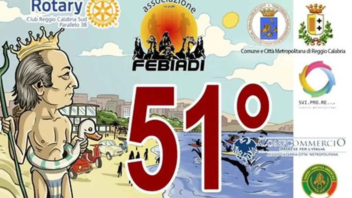 Il programma di iniziative promosse dall’associazione Febiadi di Reggio Calabria per queste festività terminerà stamane con il tuffo in mare dopo essere stato scandito dal Tuffo nell’arte nella galleria di palazzo San Giorgio), dal Tuffo nella solidarietà con il premio Giacomo Baesso conferito alla fondazione Chops Malattie Rare sempre a palazzo San Giorgio e dal Tuffo nella cultura con la conferenza del professore Daniele Castrizio “La dove un maschio abbraccia una femmina: il luogo sacro dove sbarcarono i fondatori di Reggio” presso lo Sporting Stelle del Sud – Pentimele a Reggio Calabria.