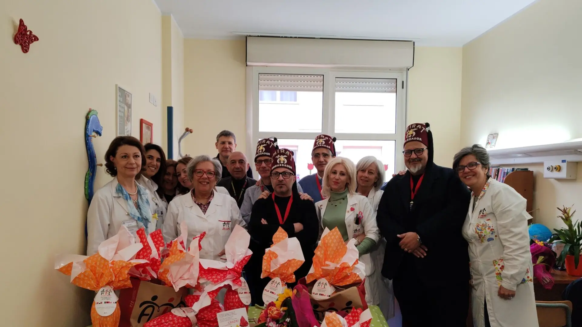 Pertanto, una delegazione dell’Emirate Shrine Rhegion – indossando i tradizionali fez – si è recata al presidio Morelli dove ha incontrato la dr.ssa Rosalba Mandaglio e la dr.ssa Giusy Sembianza, Presidente AIL Sezione Alberto Neri Reggio di Calabria Vibo Valentia e ha consegnato le uova. All’interno del reparto opera una scuola, una ludoteca e un’unità di supporto psicologico. L’ AIL mette a disposizione gratuitamente una residenza Casa AIL per i pazienti e i loro familiari provenienti da fuori città.