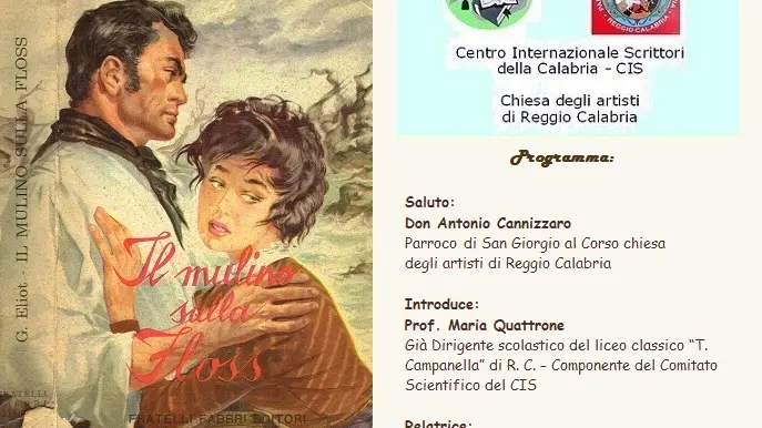 Mercoledì 28 marzo 2025, alle ore 17:30, presso la Sala conferenze San Giorgio della chiesa degli artisti di Reggio Calabria, il Centro Internazionale Scrittori della Calabria e la stessa chiesa, nell’ambito del ciclo di incontri sulla letteratura di lingua Inglese, presentano il romanzo “Il mulino sulla Floss”.