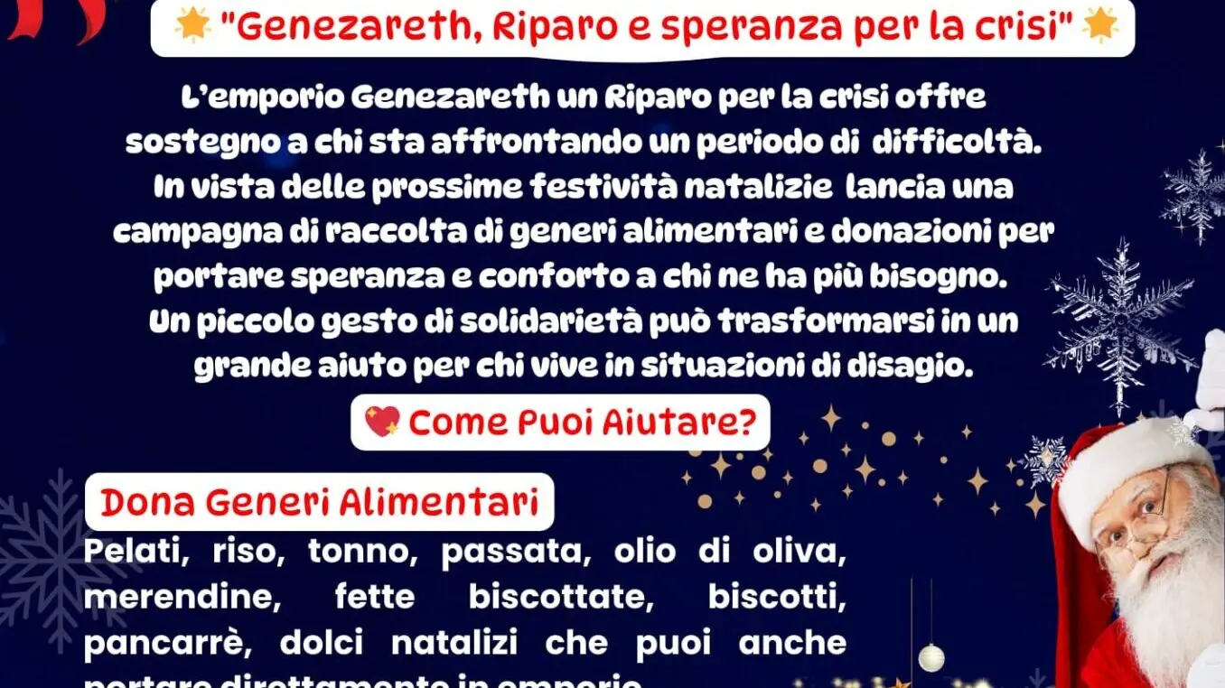 L’Emporio della Solidarietà Genezereth, un Riparo per la crisi, lancia una campagna natalizia dedicata alle famiglie più fragili, un’iniziativa che vuole trasformare piccoli gesti in grandi aiuti.