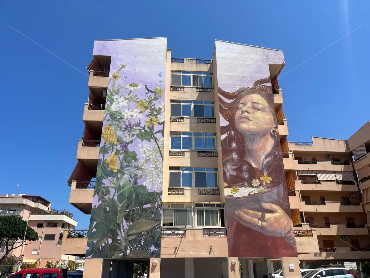 «Una rigenerazione urbana è anche una rigenerazione sociale e umana. In questi murales sono stati rappresentati i benefici della primavera e l’importanza di preservare la natura. Sulla sinistra è raffigurata una campionatura di essenze floreali botaniche tipiche della primavera all’apice e sulla destra una donna, che è la personificazione della primavera, che assume benefici da un catino dove, come da tradizione notte di San Giovanni tra il 23 e il 24 giugno, vengono immerse queste essenze floreali. L’opera è stata realizzata da Agus Rucula, artista argentina, cittadina italiana adesso residente del torinese ma legata alla Calabria, assistita da un’altra brava artista di Reggio Calabria, Tania Azzar», ha spiegato Luca Borriello, direttore Inward osservatorio nazionale sulla Creatività urbana.