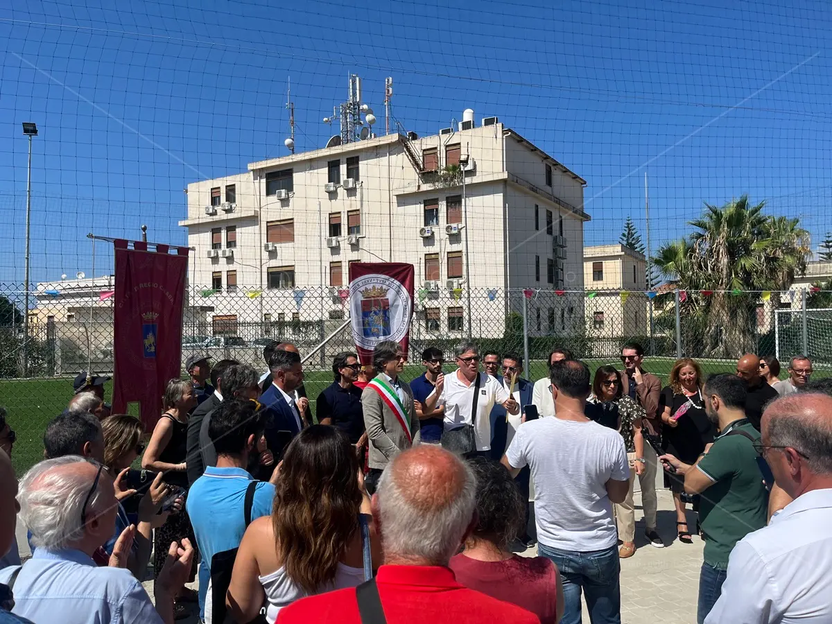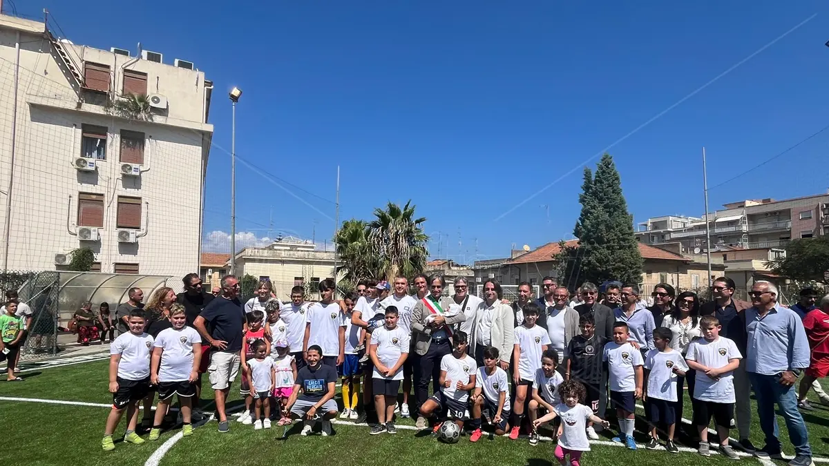 La seconda tappa dell’inaugurazione è stata la festosa inaugurazione del campetto di calcetto intitolato alla memoria di Giuseppe Errante.