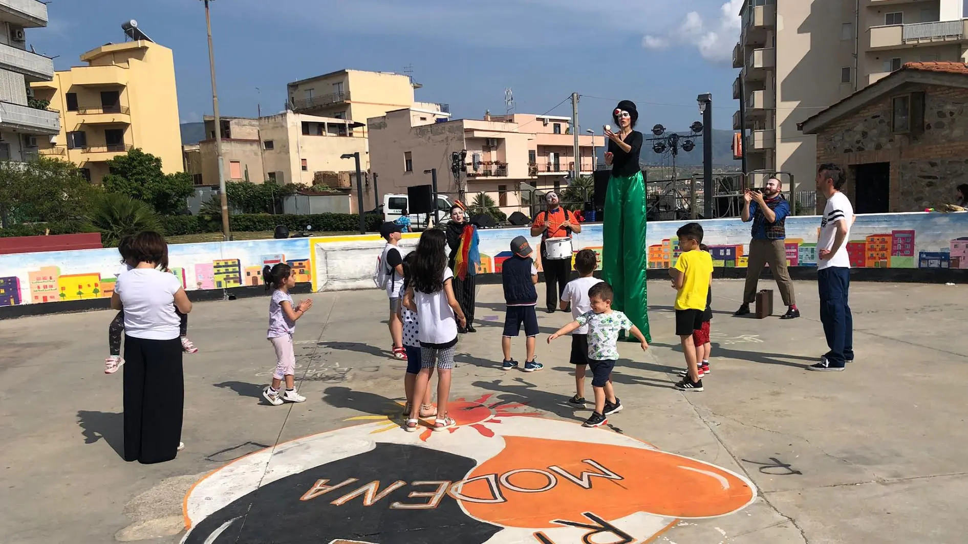 Da zona grigia e degradata ad area colorata e vivace. La piazzetta di Modena, situata nel noto quartiere a sud di Reggio Calabria, abbandona il grigiore di un tempo e si rifà il look grazie alla virtuosa iniziativa della Cooperativa sociale ‘Libero Nocera‘ e ai giovani del centro di aggregazione ‘Noi ragazzi di oggi‘.