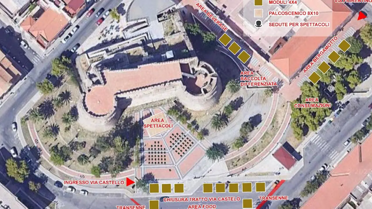È prevista un’Area “Food” (degustazione tradizionale panino con la salsiccia) con 16 postazioni; un’Area “Degustazione e vendita vini” con 3 postazioni; e l’Area “Degustazione e vendita prodotti a base di bergamotto” con 4 postazioni.