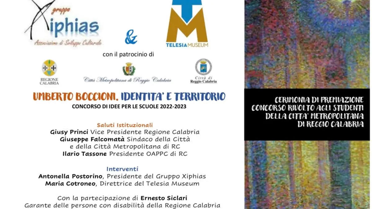 Nella giornata del 26 gennaio 2024, alle ore 17:30, presso la sala Federica Monteleone di palazzo Campanella, sede del Consiglio Regionale della Calabria, si svolgerà la cerimonia di premiazione del concorso “Futurismo versus Futuro Prossimo. Nuove Generazioni per una Città che RI-sale” dedicato a Umberto Boccioni.