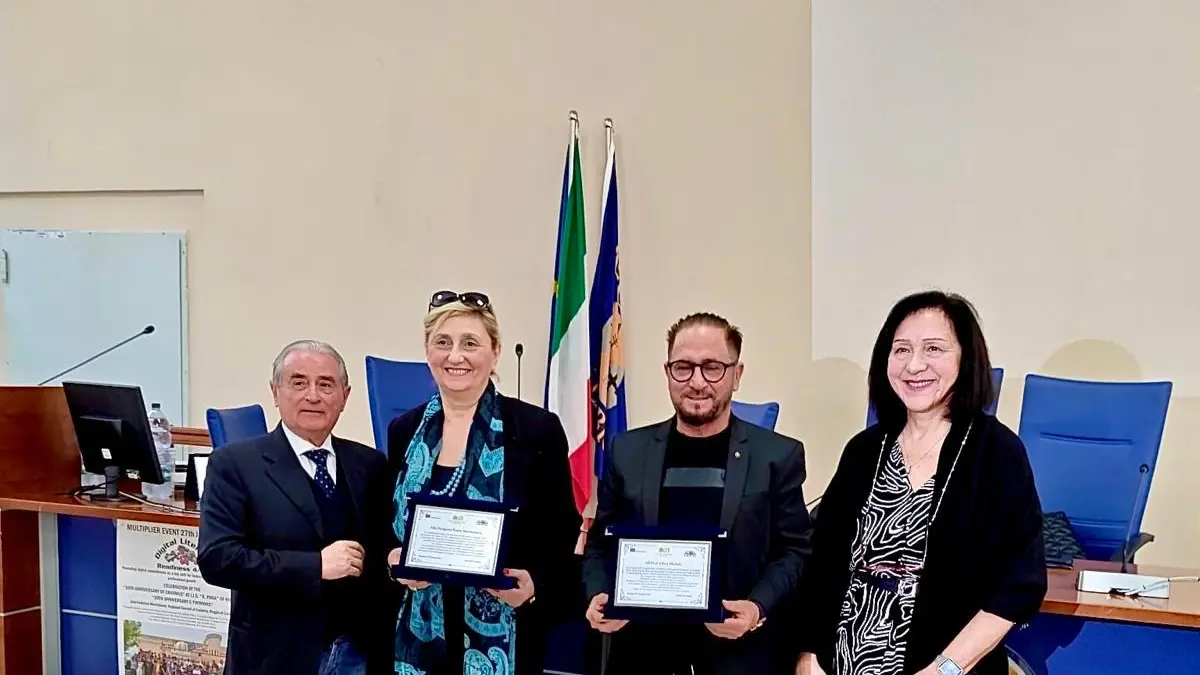 Durante la cerimonia, il Sindaco di Rosarno, Dott. Pasquale Cutrì e l’Ambasciatrice Erasmus+ Clara Elisabeth Bàez, hanno consegnato due targhe di riconoscimento alla Dirigente Russo e al Professore Oliva, in un momento di grande commozione. Le motivazioni, lette di fronte alla platea internazionale, hanno sottolineato il valore del loro operato: