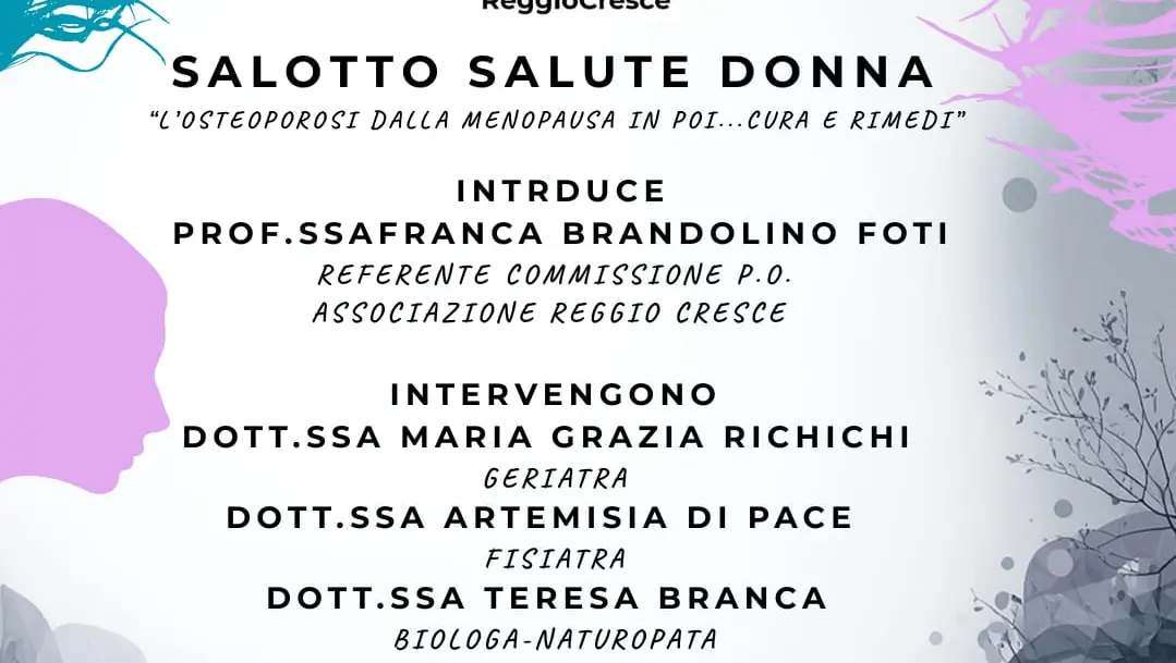 Maria Grazia Richichi geriatra e Artemisia di Pace fisiatra , della biologa naturopata dottoressa Teresa Branca a cui seguirà la testimonianza della Professoressa Grazia Barillà, chiuderà i lavori la dottoressa Rosi Perrone Presidente ReggioCresce.