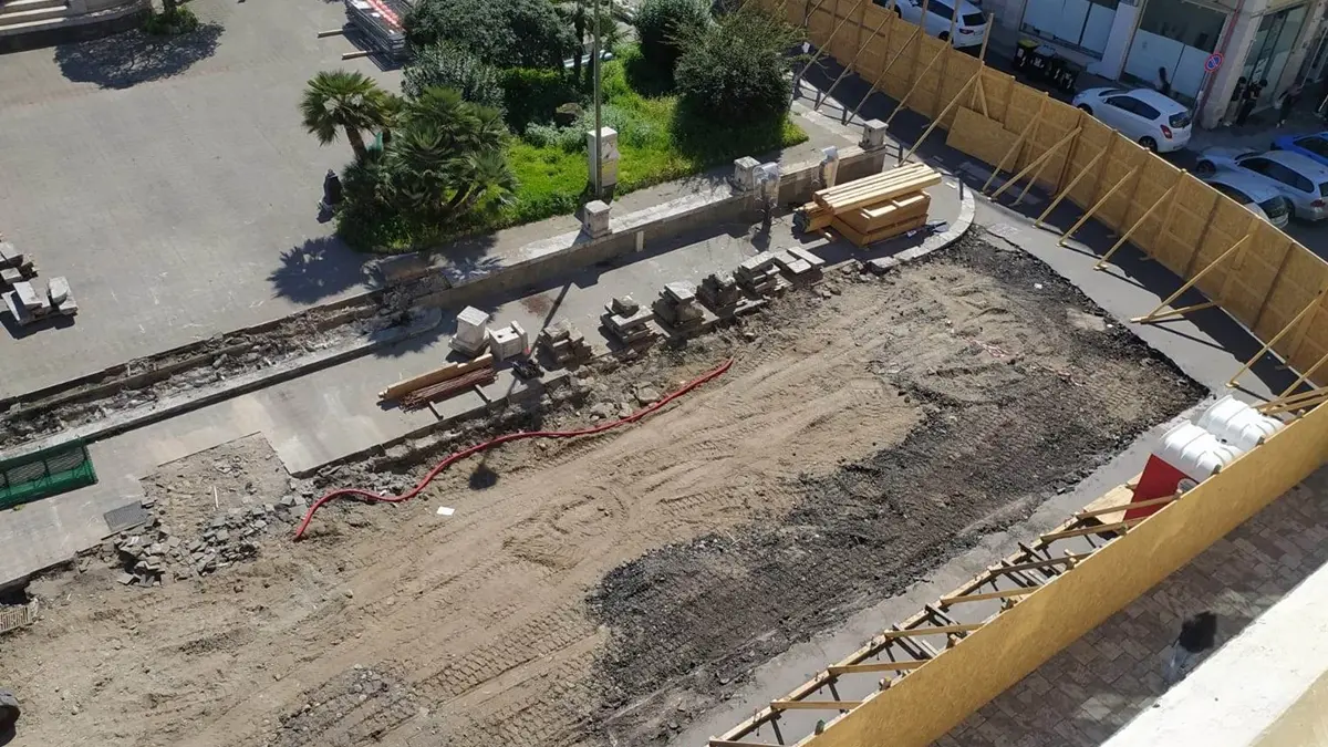 Il pavimento, composto da mattonelle in terracotta e le murature sopravvissute sono state rilevate, documentate e come da prassi al fine di garantirne la tutela, sono state ricoperte con geotessuto e terreno di risulta. Il rinvenimento effettuato con l’assistenza scientifica della Soprintendenza e degli archeologi incaricati dall’impresa appaltatrice, non pregiudica la continuazione dei lavori che proseguono nella Piazza dove nei prossimi giorni si realizzeranno gli allacci di impianti e scarichi».