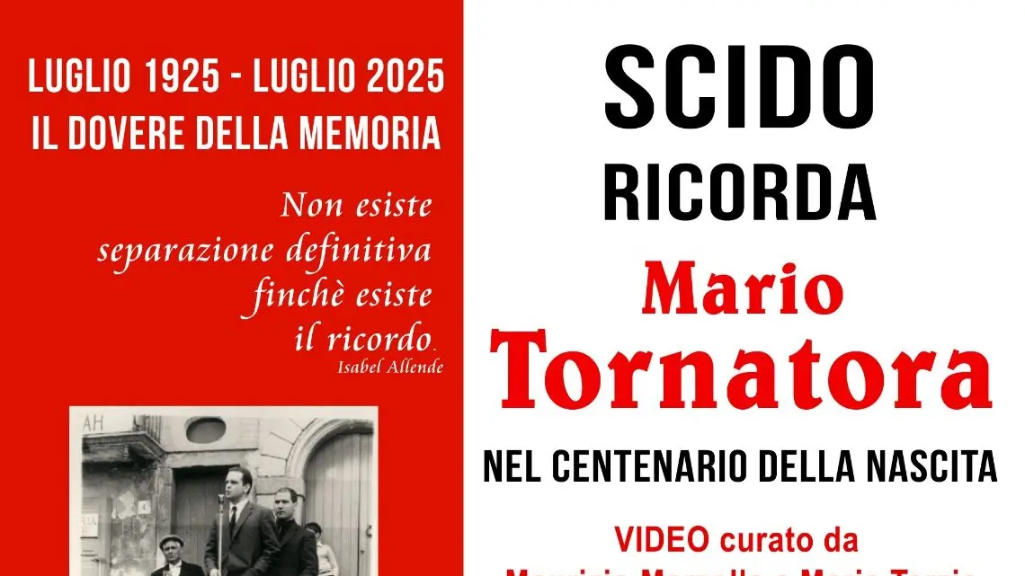 Nella certezza che “non esiste separazione definitiva finchè esiste il ricordo” (I. Allende), l’Amministrazione Comunale di Scido, avallando le richieste della famiglia che ha fortemente inteso ricordare la figura di Mario Tornatora, organizza per mercoledì 20 agosto alle ore 18:00, nella sala della Biblioteca “Paolo Greco” al Palazzo Ruffo, un incontro a ricordo dell’illustre cittadino in occasione del centenario della sua nascita avvenuta a Scido il 6 luglio del 1925.