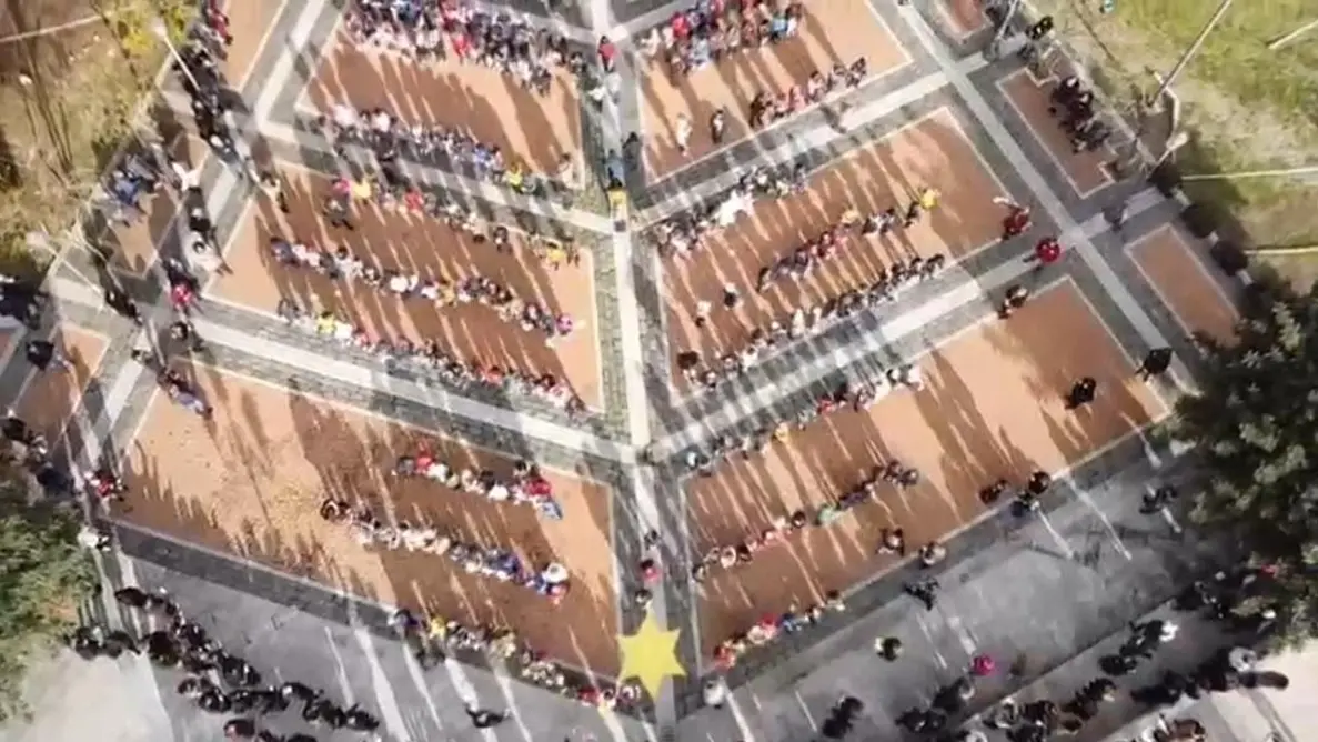 Circa 500 bambini sorridenti e consapevoli hanno battuto le mani e suonato i propri strumenti sulle note della canzone Gam Gam che ricorda la sofferenza patita dai bambini ebrei chiusi nei campi di concentramento, insegnata da una maestra ai bambini prigionieri per tirarli un po’ su di morale, e distrarli dal dramma che stavano vivendo. Un momento molto toccante quando una stella di David di grandi dimensioni ha percorso la piazza con le due ali di piccoli cittadini che iniziano il proprio percorso di consapevolezza e di ricordo.