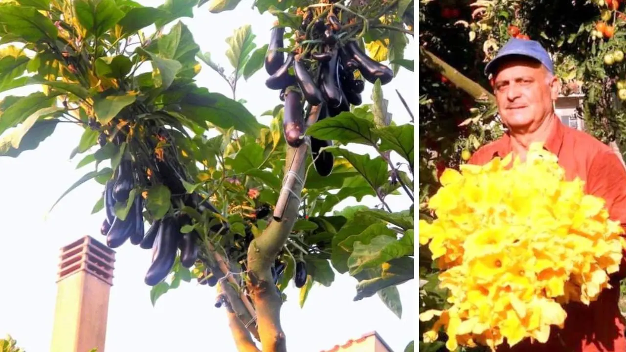 «Mentre camminavo nelle vicinanze di casa mia, ho visto una piantina di circa cinquanta centimetri – racconta Francesco Mangano -. Non capivo che genere fosse, l’ho presa e l’ho piantata nel mio giardino. Era il 2001. Sono nato in campagna e so innestare da quando avevo 7 anni. L’ho lasciata crescere ed diventava bellissima: una pianta sempreverde che fa le bacche tre volte l’anno. Ho notato che faceva i fiori identici a pomodori e melanzane, quindi ho preso delle piantine in un vivaio e le ho piantate sull’albero, il primo anno c’erano già i primi frutti. Quando lo raccontavo non ci credevano, mi prendevano per pazzo. Ho pensato che i suoi semi li avrà portati qualche uccello migratore».