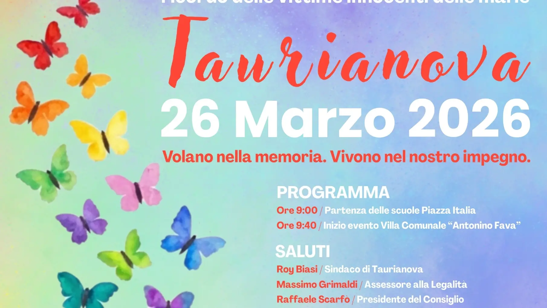 Torna per il 5° anno a Taurianova la Giornata della Memoria e dell’Impegno per le Vittime Innocenti delle Mafie organizzata dall’Amministrazione Comunale guidata dal sindaco Roy Biasi.