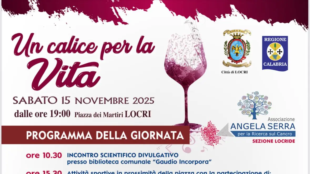 Torna anche quest’anno “Un Calice per la Vita”, l’evento itinerante di informazione, prevenzione e solidarietà dedicato al benessere e alla salute maschile, promosso dall’associazione “Angela Serra – Sezione Locride” con il patrocinio del Comune di Locri.