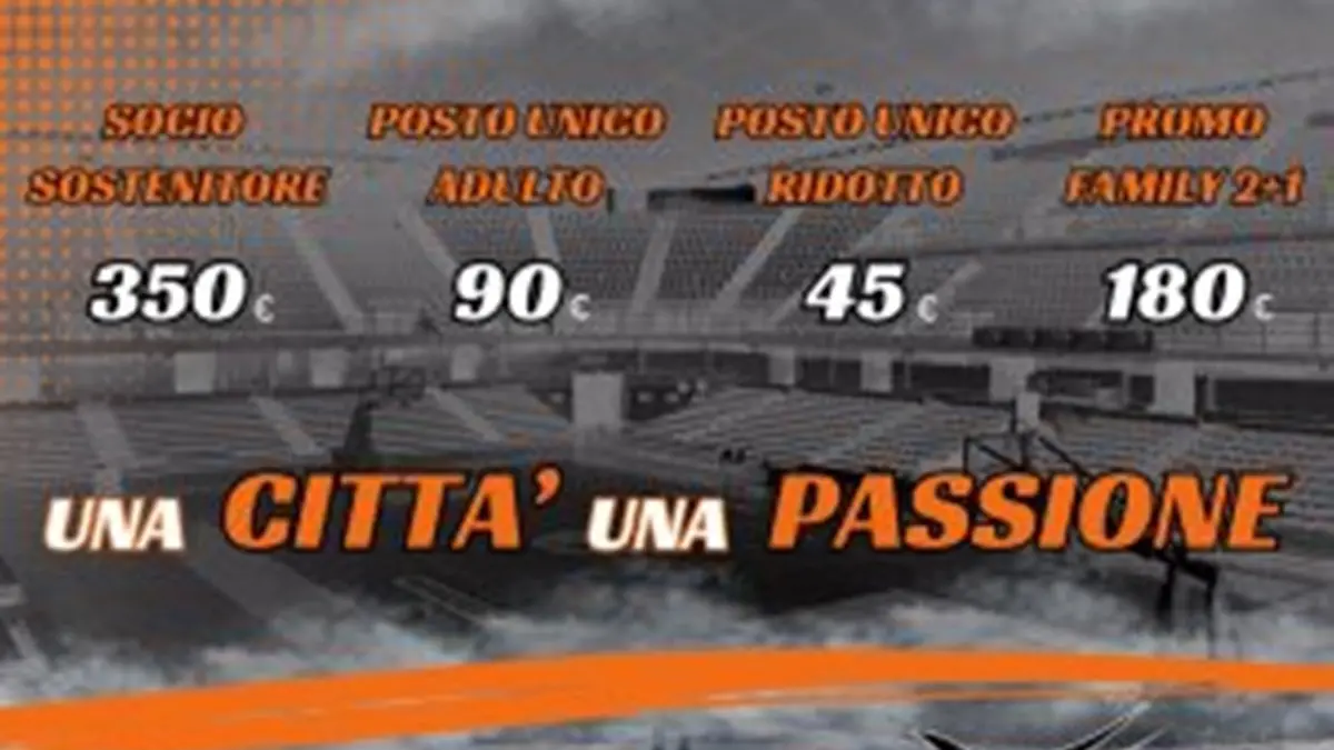 L’abbonamento dà diritto a 15 ingressi comprensivi della regular season e della fase ad orologio. La società si riserva eventualmente di indire una giornata neroarancio.