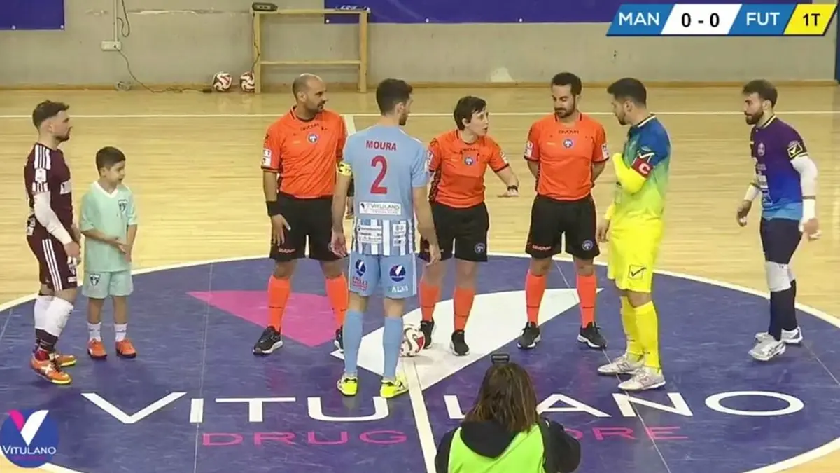 Dopo meno di due minuti, in percussione, e colpendo anche un palo, Davide Moura realizza il gol dell’uno a zero. Manfredonia si carica e trova immediatamente il 2 a 0 con Ronaldo Cabarcas. Mister Fiorenza chiama Time Out e progetta un “poweplay” con Pannuti aggiunto e l’ingresso in campo di Scopelliti che durerà, praticamente per tutta la gara. Honorio a rete trova la risposta dei pugliesi, idem Scopelliti poco dopo, Honorio, ancora una volta, un minuto dopo. Il forcing Futura aumenta: ci prova anche Pizetta ma la palla si spegne di poco a lato.