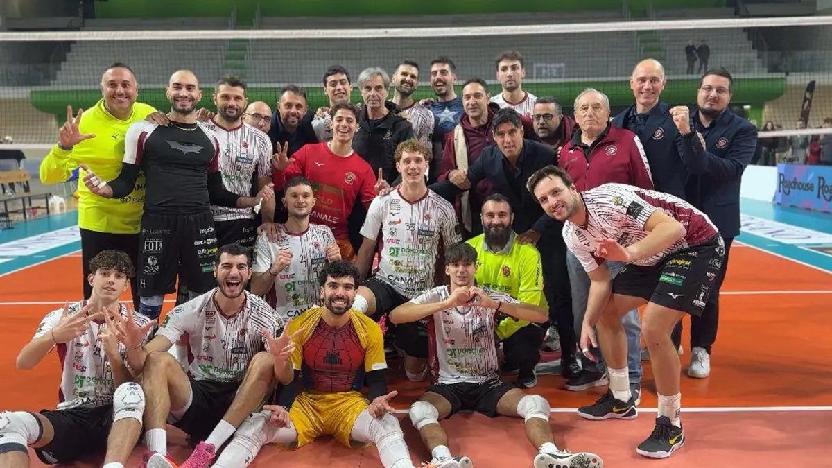 Magnifico impatto dal secondo set in poi per gli amaranto trascinati da un favoloso Saitta al palleggio e dalle giocate offensive di Lazzaretto e Laganà. Ma è tutto il gruppo che funziona e che è stato sostenuto da più di 80 tifosi in trasferta, tutti colorati d'amaranto, festanti e vincenti.