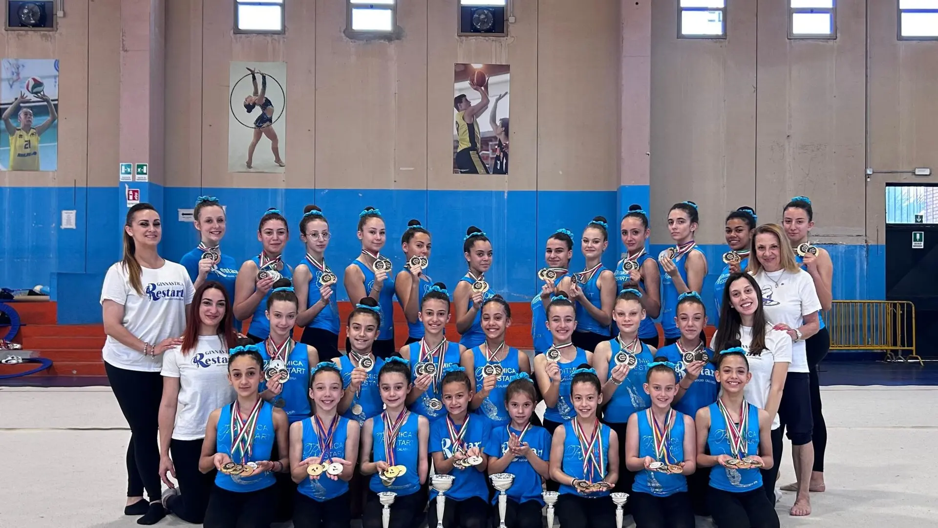Egemonia Restart nel livello D: Oro di Simona Surace e bronzo di Viola Vitetta al corpo libero nella categoria Allieve emergendo su 35 atlete in gara. Titolo di campionesse d’Italia anche per Fosso Alessia al cerchio e Cogliandro Elisabetta alla palla. Nella categoria Giovani al corpo libero grandino più alto del podio per Carlotta Iacopino e a seguire Arianna Cicciù (medaglia d’argento) mentre alla palla Elisa Cara si aggiudica il primo gradino del podio. Non finisce qui, nella categoria junior oro anche per Rebecca Mallamaci al corpo libero e Alessia Surace al cerchio seguita dalla compagna di squadra Sofia Cogliandro (bronzo). Nuovamente Campionessa Italiana Veronica Donato al cerchio nella categoria Senior.