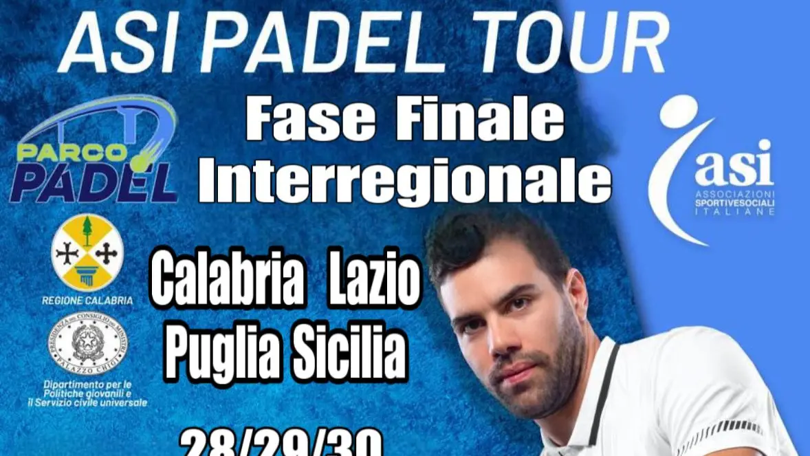 Dal 28 al 30 novembre 2025, la città di Reggio Calabria, ospiterà la fase finale interregionale dell’ASI Padel Tour. Si prevede la partecipazione di atleti, provenienti da altre regioni italiane: Lazio, Campania, Basilicata, Puglia e Sicilia oltre alla Calabria. Le gare si disputeranno negli impianti dei circoli CKC Padel Garden e Sporting Stelle del Sud, entrambi nella zona Pentimele di Reggio Calabria.
