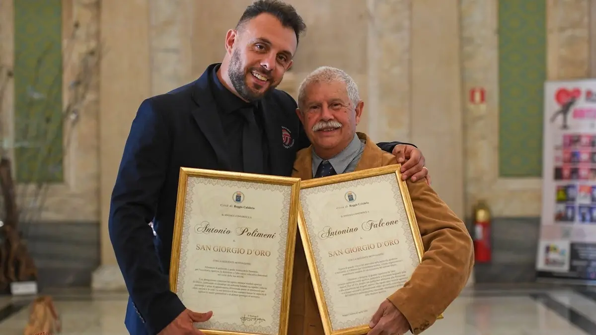 «La Fipav Reggio Calabria – dichiara il presidente del comitato territoriale reggino Fipav, Mimmo Panuccio - esprime vive e sentite congratulazioni a due illustri protagonisti reggini della pallavolo nazionale, insigniti del San Giorgino d’Oro, la massima onorificenza conferita Comune di Reggio Calabria. Un riconoscimento prestigioso che celebra percorsi diversi ma profondamente legati tra loro: da un lato, il passato glorioso rappresentato da Antonino Falcone, protagonista dei grandi successi della storica Mangiatorella, simbolo di un’epoca indimenticabile della pallavolo reggina; dall’altro, il presente che guarda con fiducia al futuro, incarnato da Antonio Polimeni, recente vincitore della Coppa Italia e della Supercoppa Italiana alla guida della Domotek Reggio Calabria.