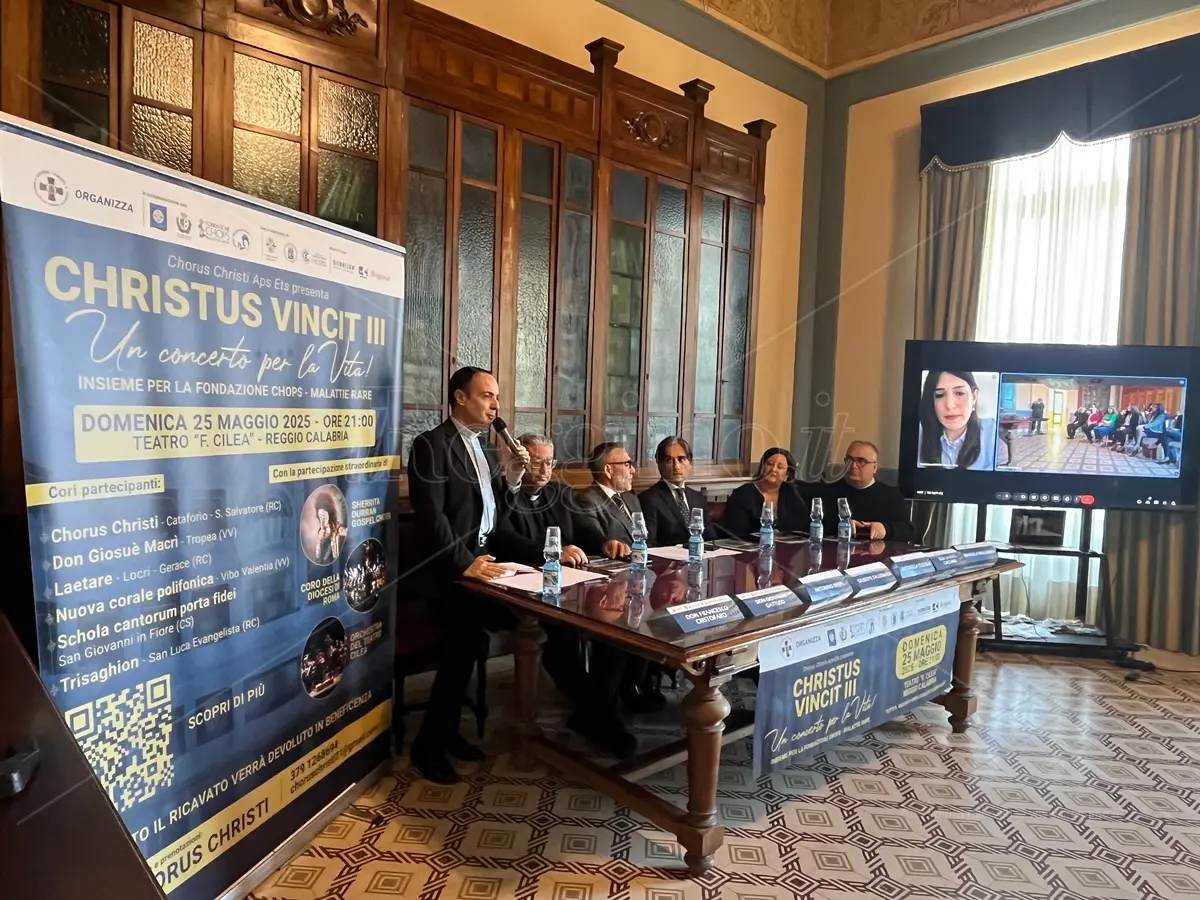 Presentata nella biblioteca Gilda Trisolini di palazzo Alvaro a Reggio Calabria, la terza edizione di Christus Vincit un concerto per la vita, promossa dalla Corale polifonica Chorus Christi con il patrocinio di Regione, Consiglio Regionale della Calabria, Città Metropolitana e Comune di Reggio. L’incasso quest’anno sarà interamente devoluto alla fondazione Chops malattie rare. L’evento, di cui media partner è il Network LaC, è in programma per domenica 25 maggio alle ore 21 al teatro Francesco Cilea di Reggio Calabria. La conferenza stampa si è aperta in musica con Alessandro Carere e Antonino Barillà al flauto, Graziella Danieli al pianoforte.